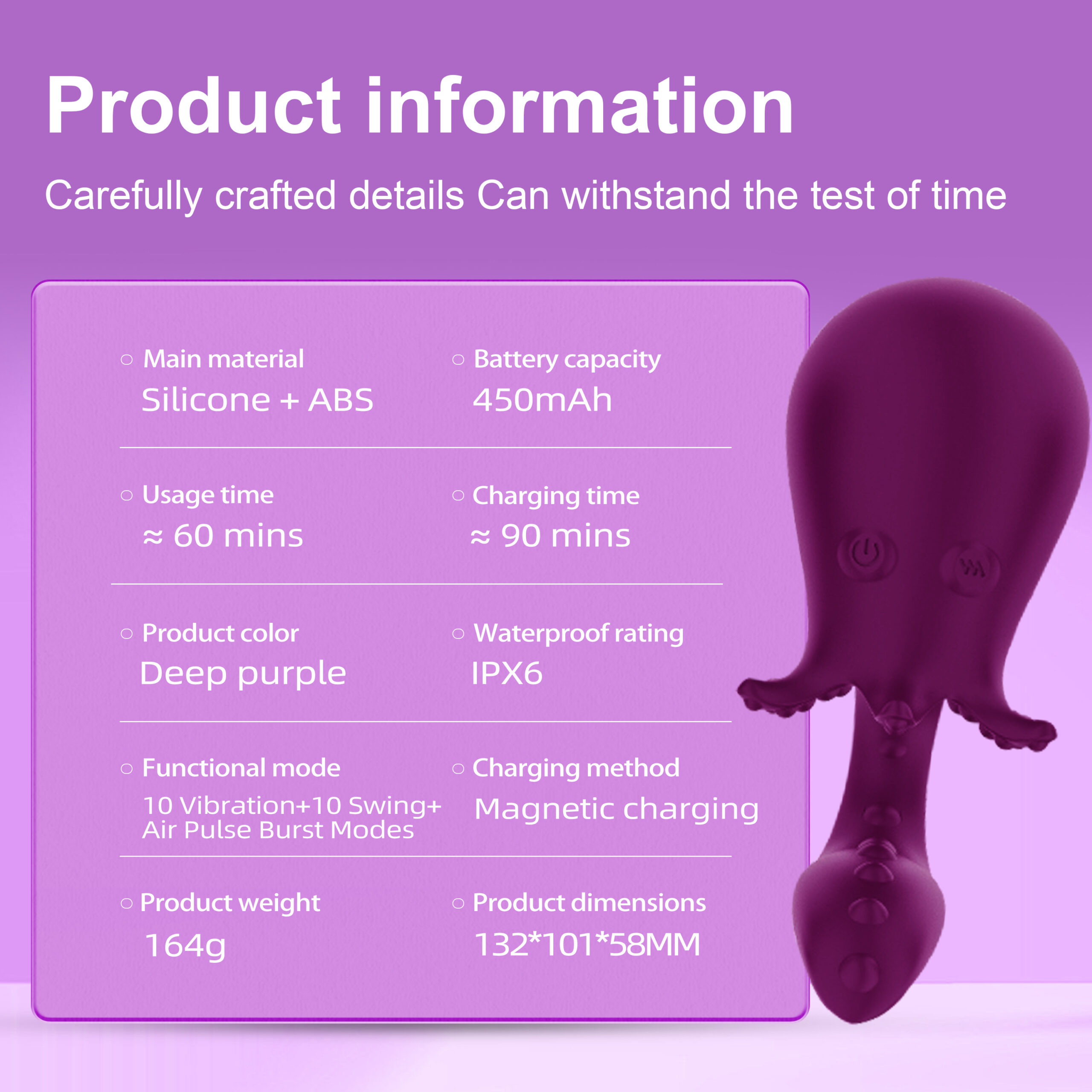 - Octopus Penetrating Vibrator: 360° Rotation + 10 Vibration + 10 Swing + Air Pulse Burst Modes | Air-Squeeze Pressure Sensitivity, Magnetic Charging, APP Remote Control | Interactive Partner Play Anytime, Anywhere