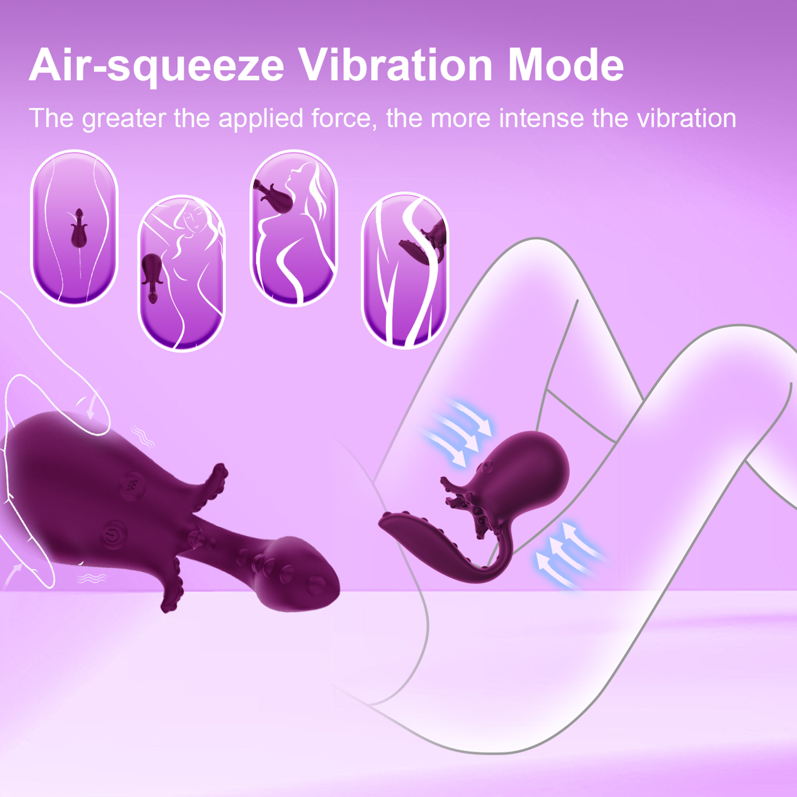 - Octopus Penetrating Vibrator: 360° Rotation + 10 Vibration + 10 Swing + Air Pulse Burst Modes | Air-Squeeze Pressure Sensitivity, Magnetic Charging, APP Remote Control | Interactive Partner Play Anytime, Anywhere
